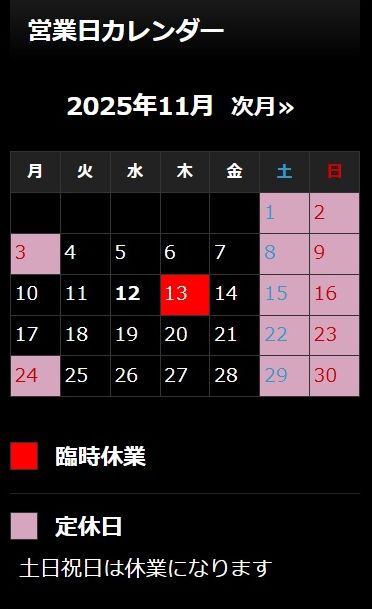 ご注文は通常通りとなりますが、ご注文いただいた商品の発送、お問い合わせへの返信は11月14日(金曜日)以降となります。