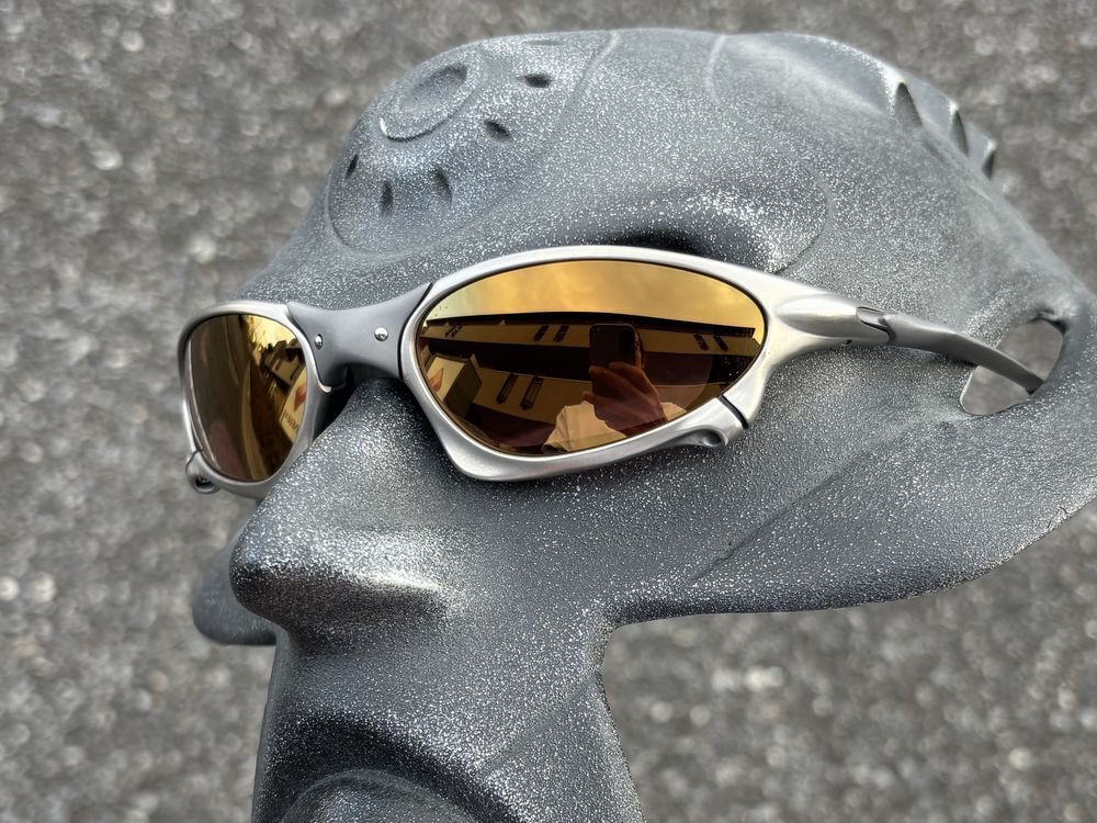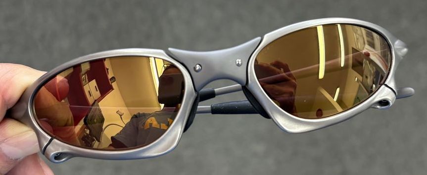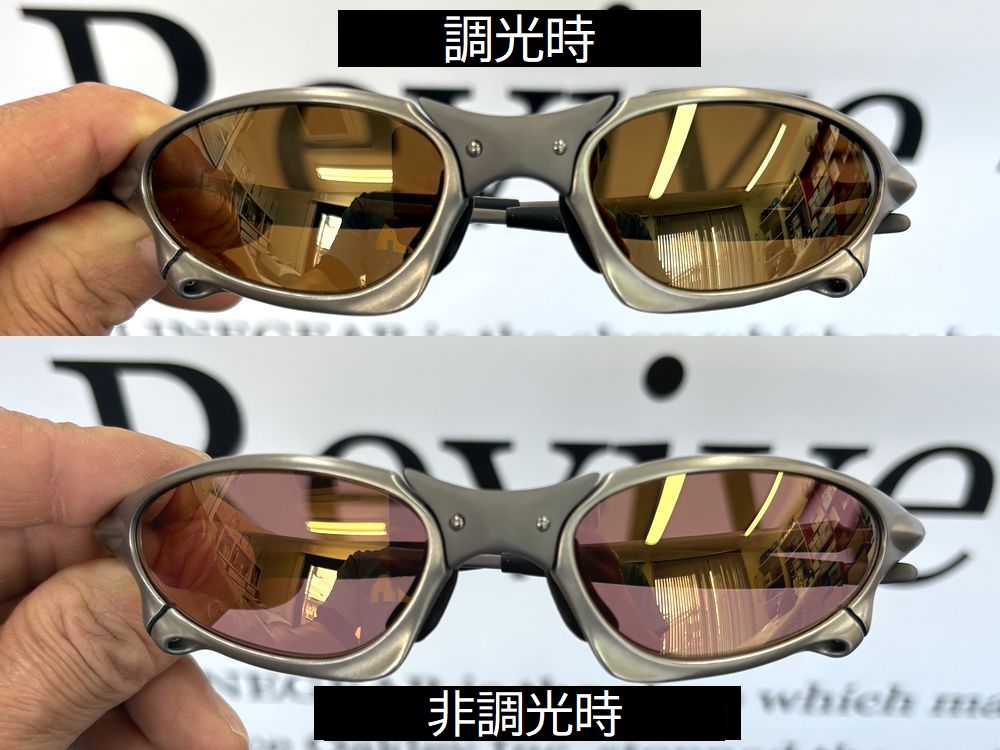 レンズカラーの印象としては、調光していないときは透明感のある、少しピンクっぽいゴールド、調光時はゴールドミラーが強調されます。ミラーがしっかりと入っているので、非調光時でもほとんど目が透けて見えることはありません。とても上品な印象のゴールドレンズになります。