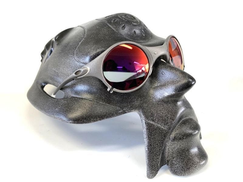 ミラーはOAKLEYのルビーイリジウムに近い色合いのミラーで、裏面はARコーティングが付いています。ベースレンズもルビーイリジウムと同じダークグレーです。