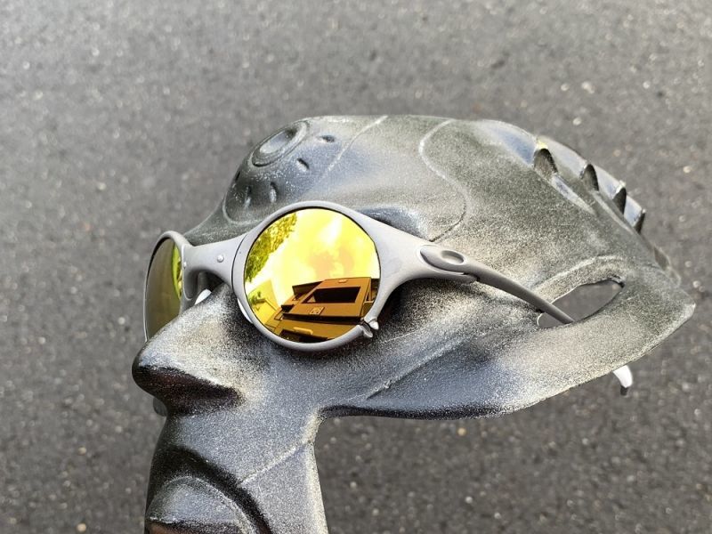 濃いめのレンズにブラウンレンズに明るいゴールドミラー。目が透けて見えることはありません。