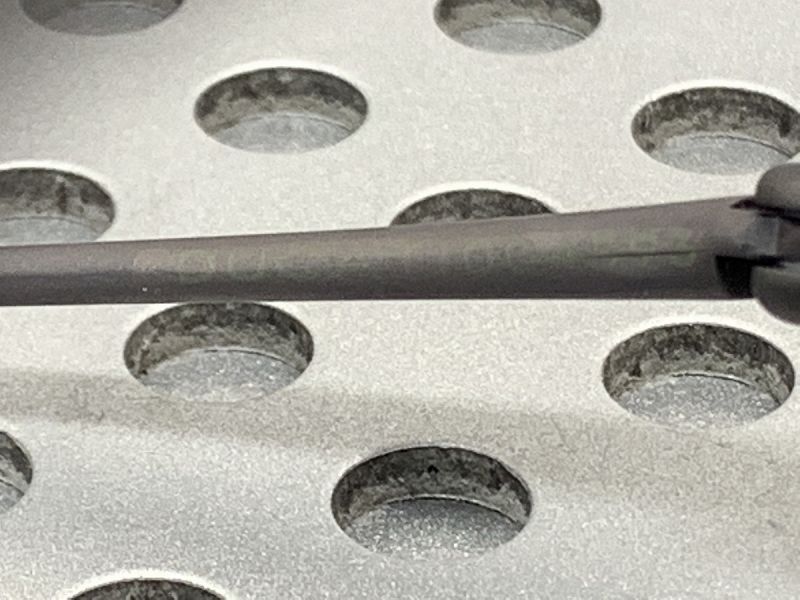 フレームの傷や汚れはすべて取り払い、新品と同じ様な状態に復活させています。フレームのダークグレーのカラーはペイントなどではなく、きちんと素材の色を変化させて入れていますので、長く使用していただいても、カラーが剥がれたり、色落ちすることはありません。