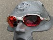 下の画像の、カメラの撮影方向からみて手前側のレンズはブラック/レッドのレンズに見えますが、奥側のレンズは真っ赤に見えると思います。これが、このミラーの魅力だと思います。とても綺麗なレッドレンズです。