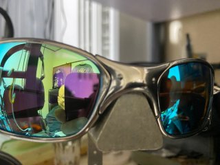 ベースレンズは濃いめのグレーですが、ミラーの影響でレンズを通しての見え方はパープルっぽく見えます。