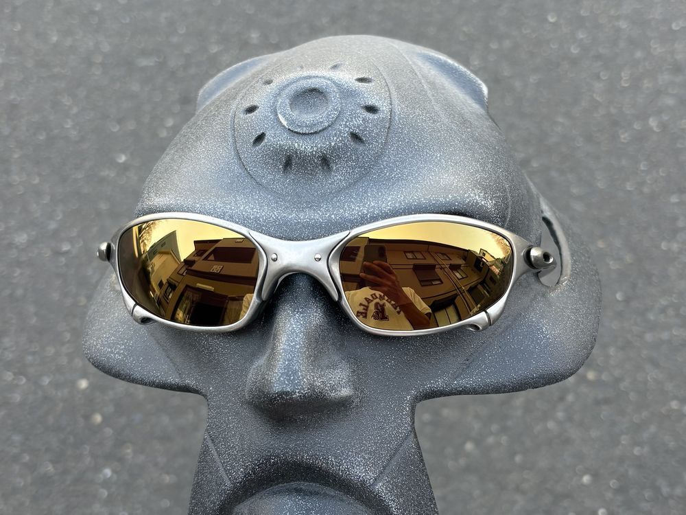 レンズカラーの印象としては、調光していないときは透明感のある、少しピンクっぽいゴールド、調光時はゴールドミラーが強調されます。ミラーがしっかりと入っているので、非調光時でもほとんど目が透けて見えることはありません。とても上品な印象のゴールドレンズになります。