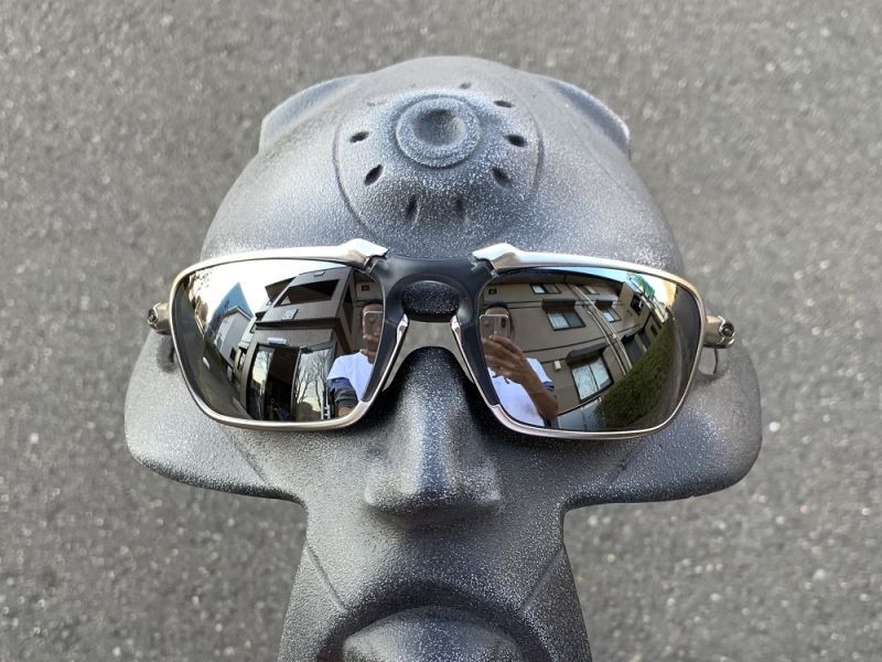 少し強めのシルバーミラーで、OAKLEYのクロームイリジウムに近い色味になります。ミラーが利いた時の色の印象はシルバーっぽい印象になります。
