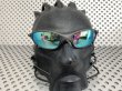 ピンク系のHDベースレンズにターコイズブルーのミラーが付いています。ピンクとブルーの色のミックスがとても綺麗です。ミラー反射が無いときはベースレンズのピンクが強調されますので、目が透けて見える感じになります。