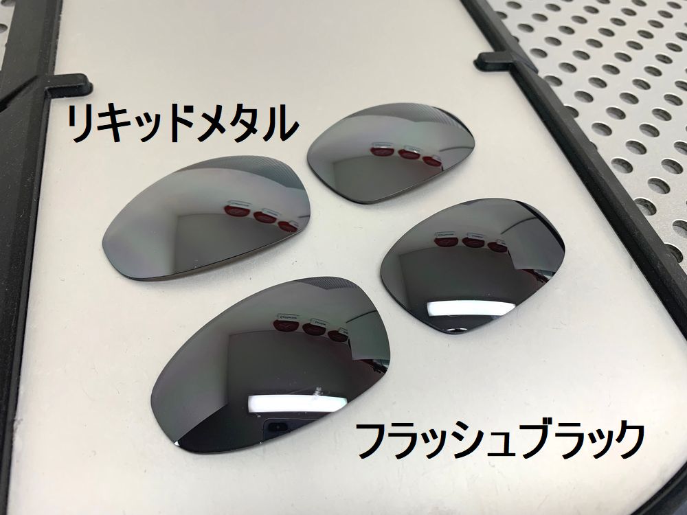 リキッドメタル、フラッシュブラック共にグレーベースのレンズにシルバーミラーが付いています。