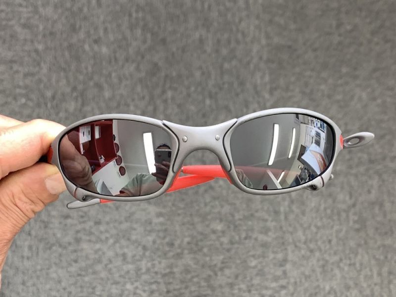 薄いシルバーミラーで、OAKLEYのブラックイリジウムに近い色味になります。ミラーが利いた時の色の印象はブラックっぽい印象になります。