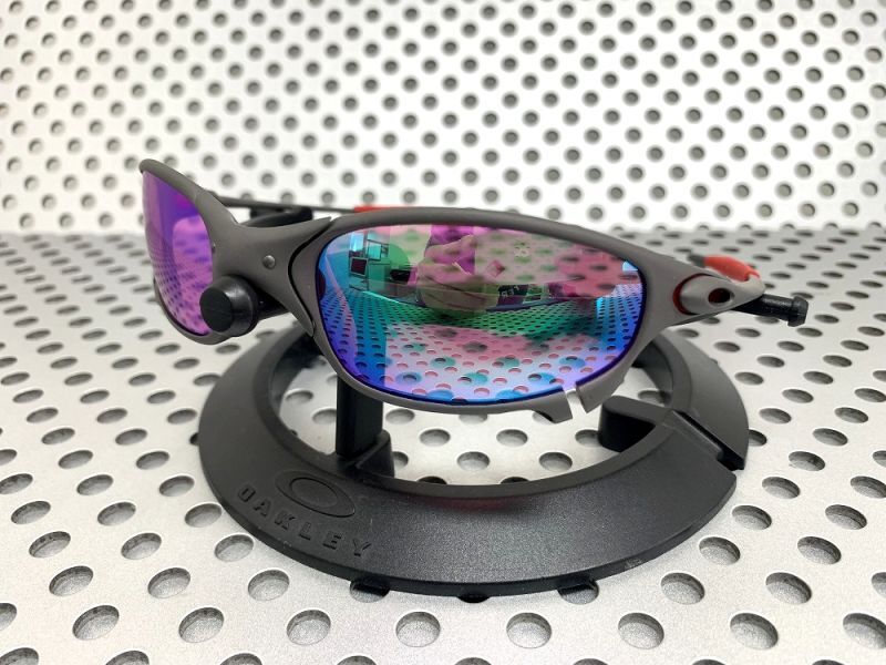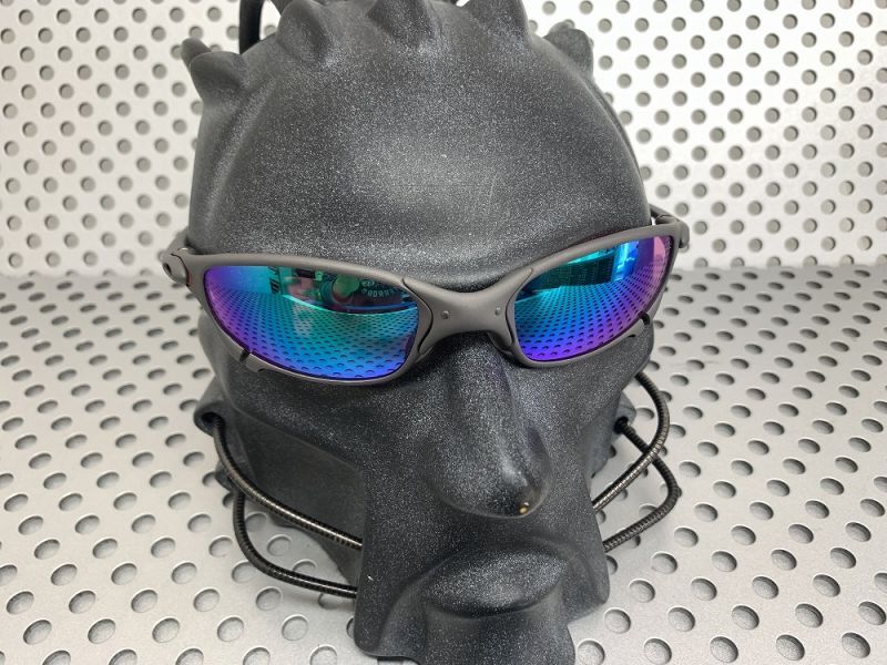 ピンク系のHDベースレンズにグリーン/ブルーのミラーが付いています。ベースレンズのピンクとグリーンのミラーの感じがとても綺麗です。ミラー反射が無いときはベースレンズのピンクが強調されますので、目が透けて見える感じになります。