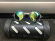 ピンク系のHDベースレンズにターコイズブルーのミラーが付いています。ピンクとブルーの色のミックスがとても綺麗です。ミラー反射が無いときはベースレンズのピンクが強調されますので、目が透けて見える感じになります。