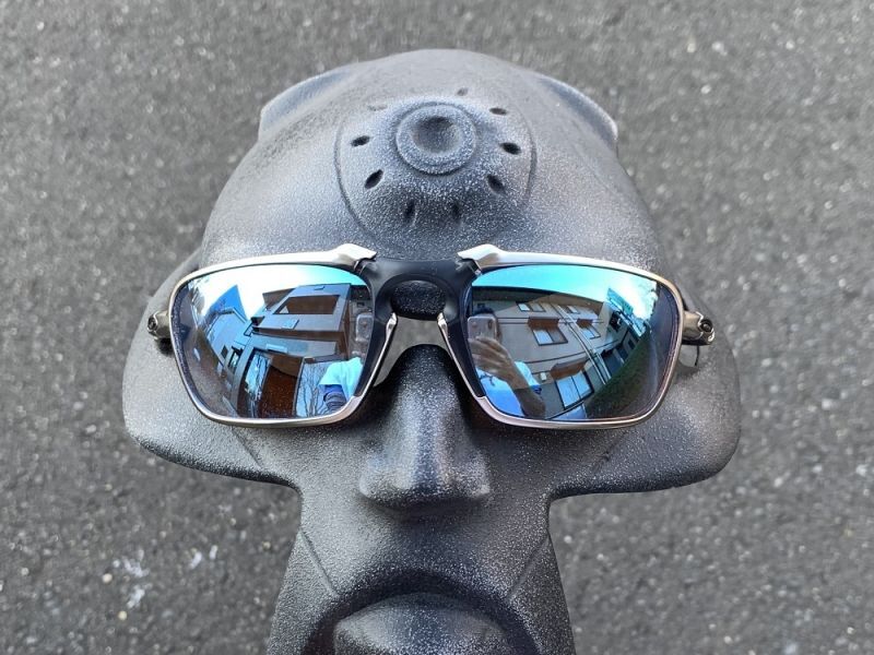 ブラウンレンズに明るいアイスブルー。ミラー反射時はミラーが強調されますが、ミラー反射が無いときはやや目が透けて見える感じになります。OKALEYのG30と同じような感じです。レンズを通しての視野は明るい印象で、コントラストのある視野を与えてくれます。