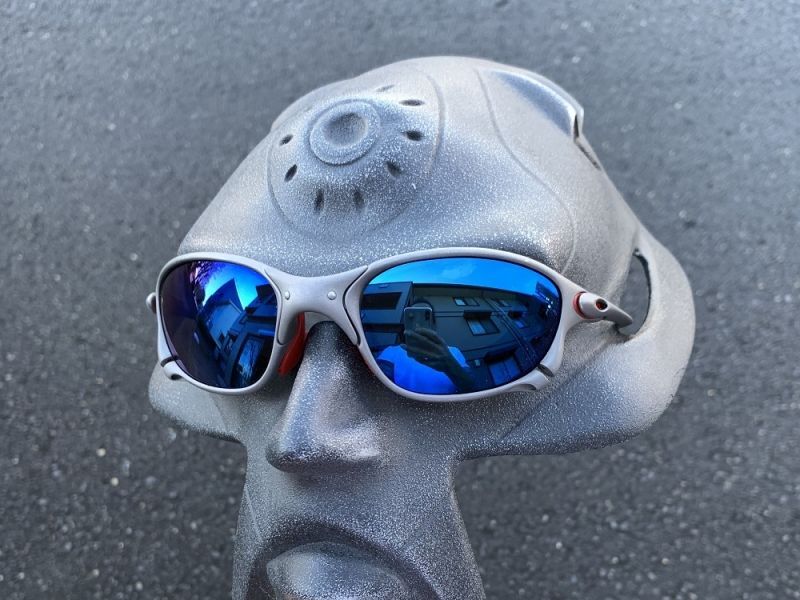 レンズを通しての見え方、レンズの厚み、透過率等、ミラーの色、ほぼ全てOAKLEYの "アイスイリジウム" と同じです。透過率10%なので、目が透けて見えることはほぼありません。