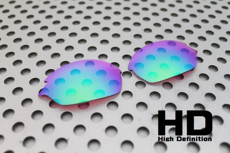 ピンク系のHDベースレンズにグリーン/ブルーのミラーが付いています。ベースレンズのピンクとグリーンのミラーの感じがとても綺麗です。ミラー反射が無いときはベースレンズのピンクが強調されますので、目が透けて見える感じになります。