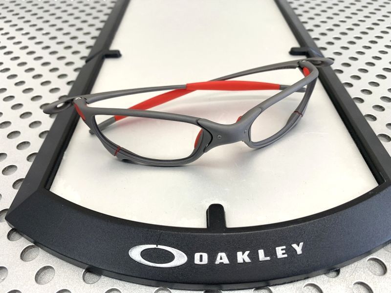 ジュリエットの第一世代はもともと手作業で仕上げられているため、ノーズの突起部分は製造時の、型から外した後は触られていません。ですので角ばっていて、ノーズブリッジを硬めに維持するには最適の形状をしています。後期モデルは型から外した後にバレル研磨されていますので、ノーズの先端の突起はそのことにより角が削られてしまって薄く、細くなっています。そのことがノーズの緩みの一因になってしまっています。