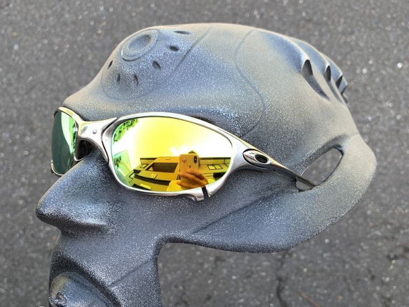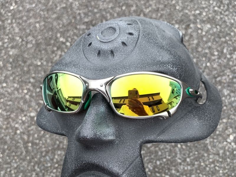 濃いめのブラウンレンズに明るいゴールドミラー。目が透けて見えることはありません。