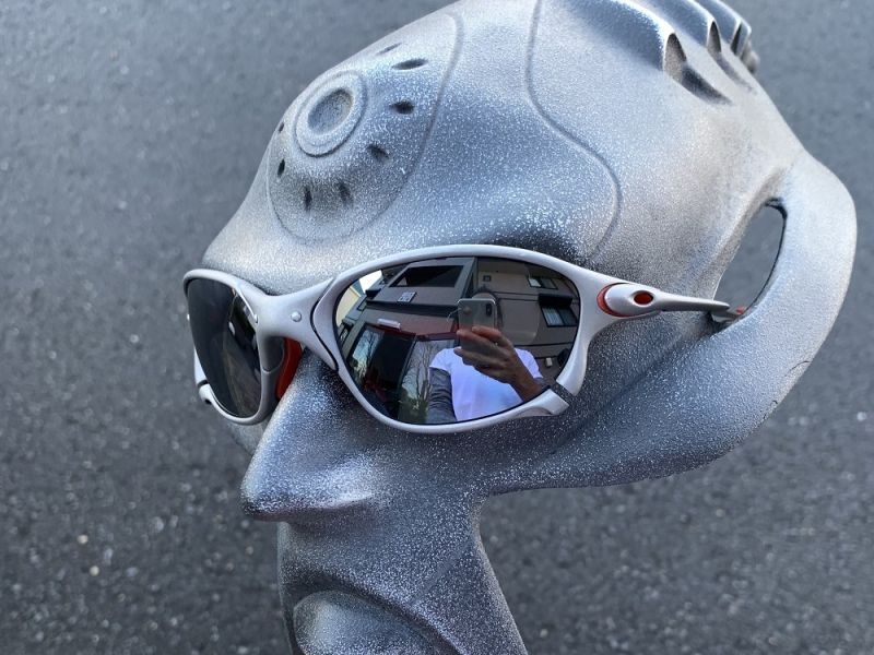 薄いシルバーミラーで、OAKLEYのブラックイリジウムに近い色味になります。ミラーが利いた時の色の印象はブラックっぽい印象になります。