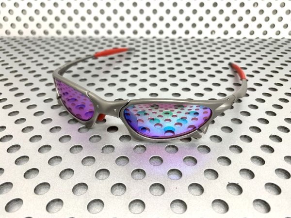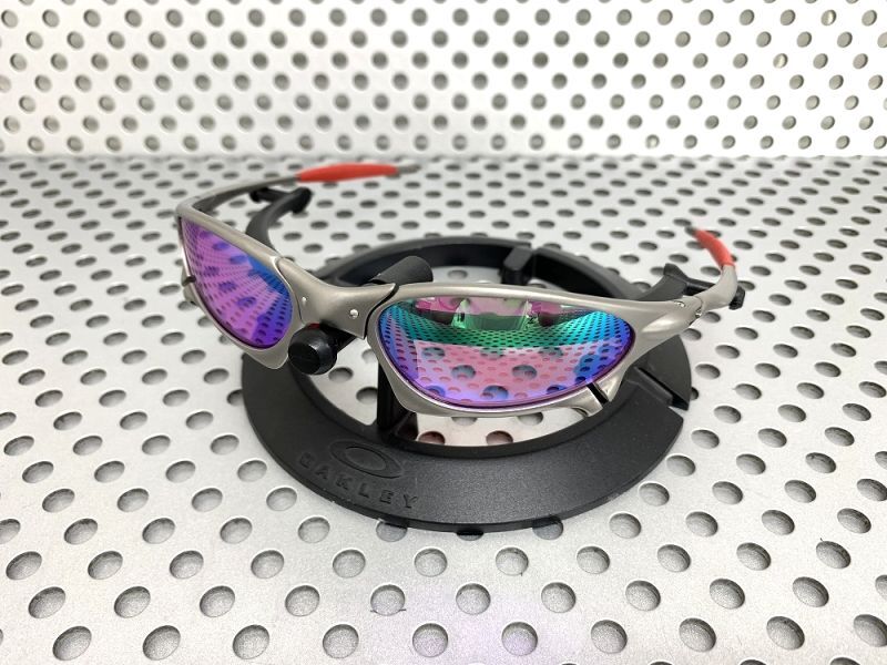 ピンク系のHDベースレンズにグリーン/ブルーのミラーが付いています。ベースレンズのピンクとグリーンのミラーの感じがとても綺麗です。ミラー反射が無いときはベースレンズのピンクが強調されますので、目が透けて見える感じになります。