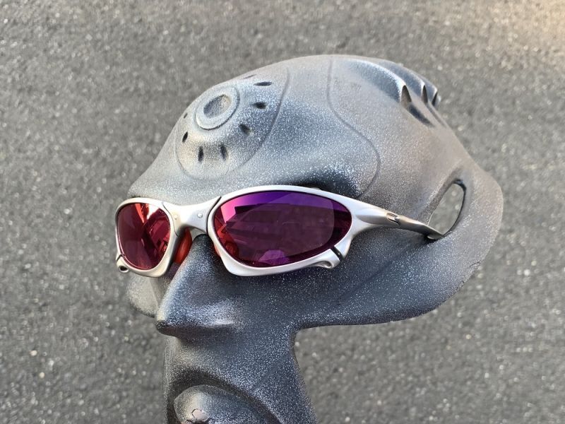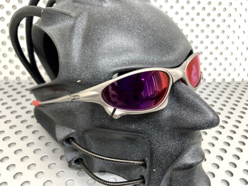 ピンク系のHDベースレンズにレッドミラーが付いています。ベースレンズのピンクとレッドミラーの感じがとても綺麗です。ミラー反射が無いときはベースレンズのピンクが強調されますので、少し目が透けて見える感じになります。